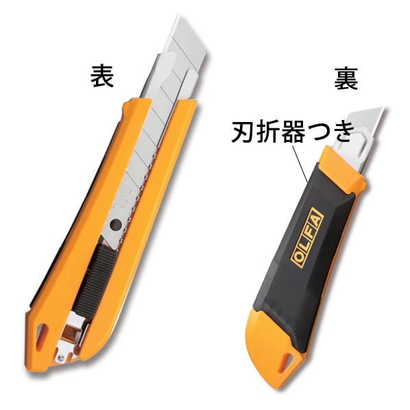 古くなった刃を折る「刃折器」とカッター本体が一体化したカッター。手軽かつ安全に刃を折ることができます。