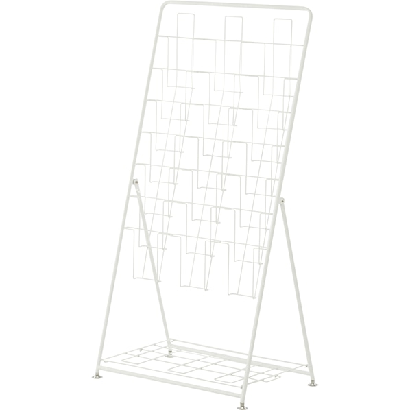 商品のお渡しは、原則車上渡しとなります。A4サイズを7段3列に収納できる折りたたみ式のシンプルなパンフレットスタンド。パンフやちらしのストックが置ける荷台付き。アジャスターを調整してガタつきのないように設置してください。