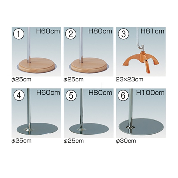フロア用:(1)~(7)(80~120cm:(1)(3)(4)(7)130~150cm:(2)(3)(5)(6)(7)のベースがおすすめです。)