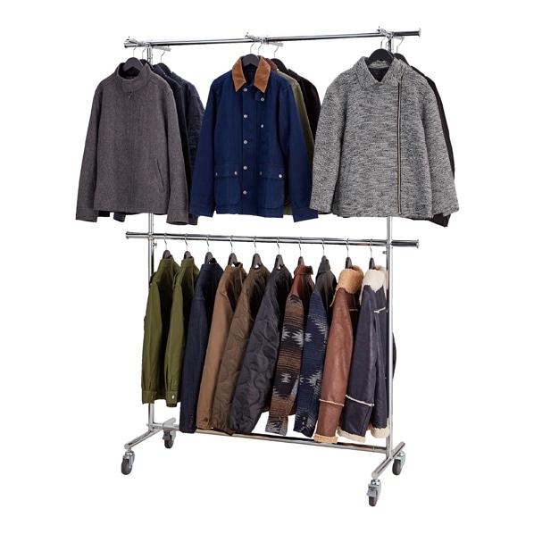 店頭用のハンガーラックだけでなく、倉庫やバックヤードなどで、衣類を大量保管するのに適した大型のダブルハンガーも販売しています。店内ディスプレイ用途でも使うことができ、省スペースでボリューム陳列が可能です。